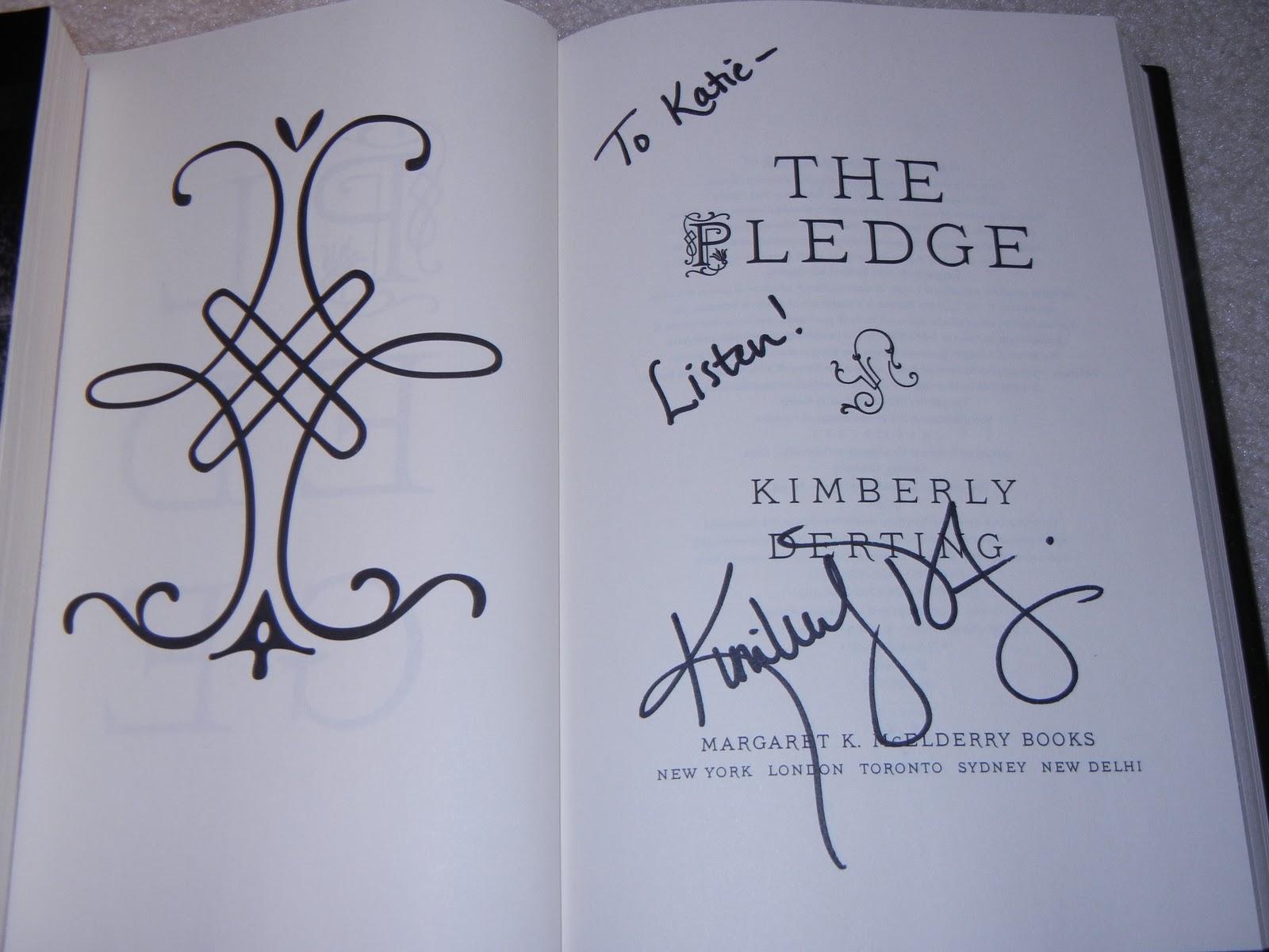 The Pledge by Kimberly Derting+Bookmark-I couldn't resist, I ordered myself a copy that was signed. Since I love her other books I had to get this one, even though it wasn't my favorite.